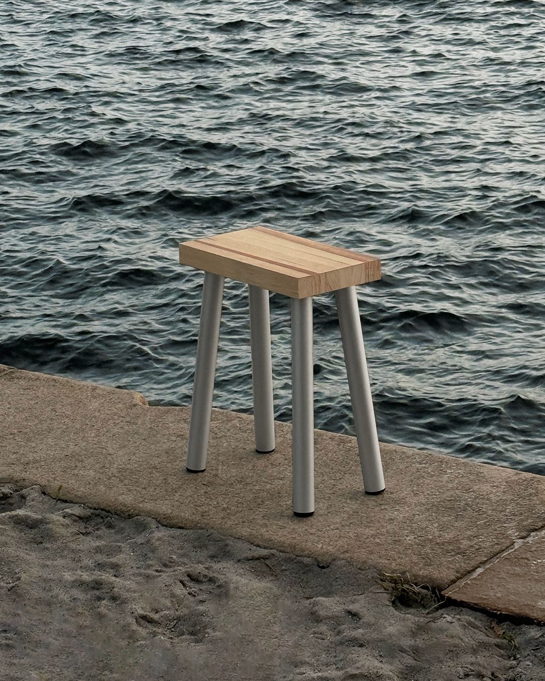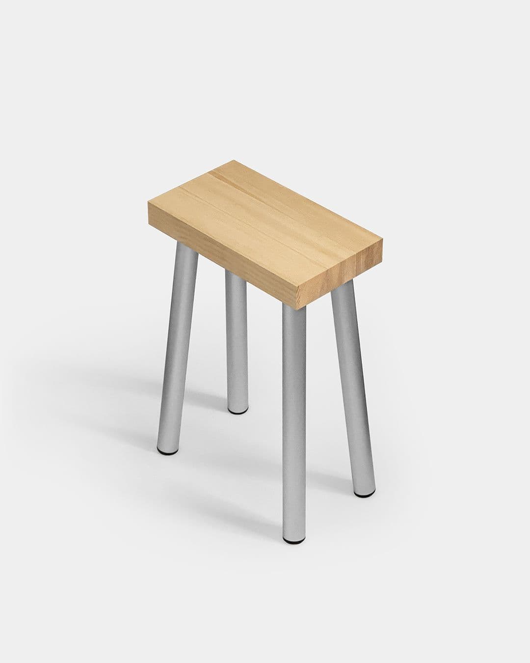 Pino is a stool designed as a friendly companion for everyday life. Made from Swedish pine and anodised aluminium, it was developed with simplicity and clarity in mind. Created in a one-room apartment in Copenhagen, Pino is made for small spaces, with a light presence and a quiet, playful character.