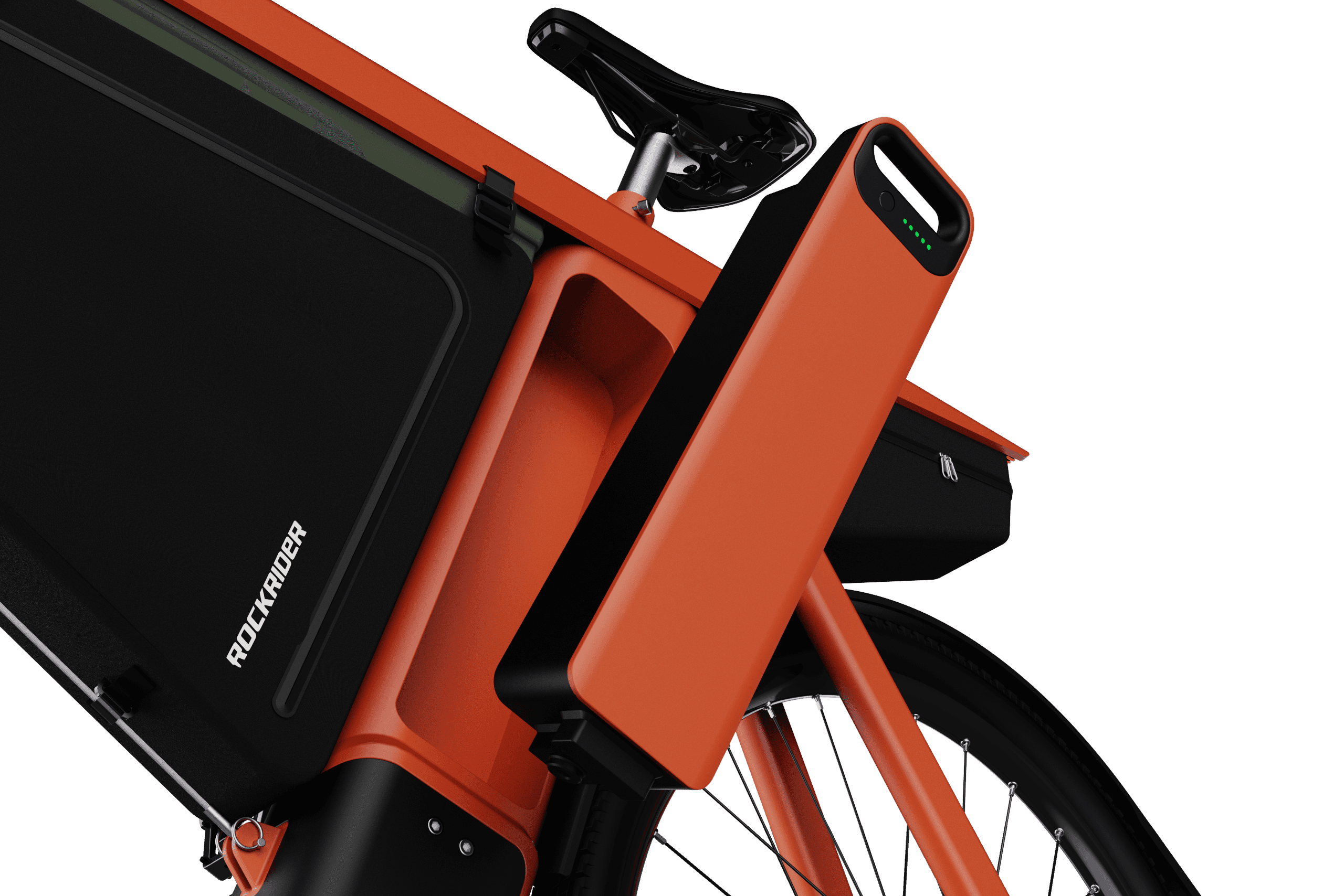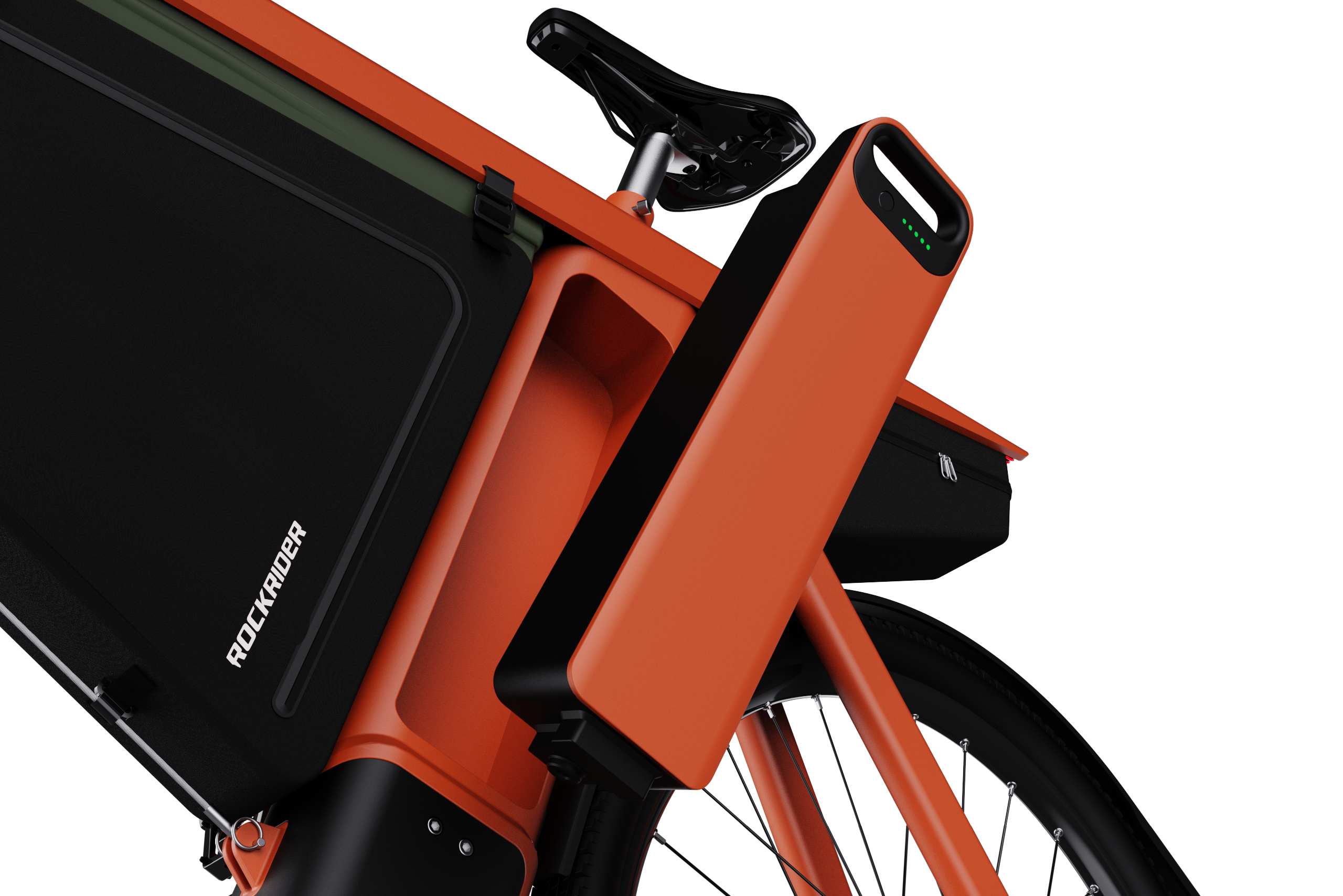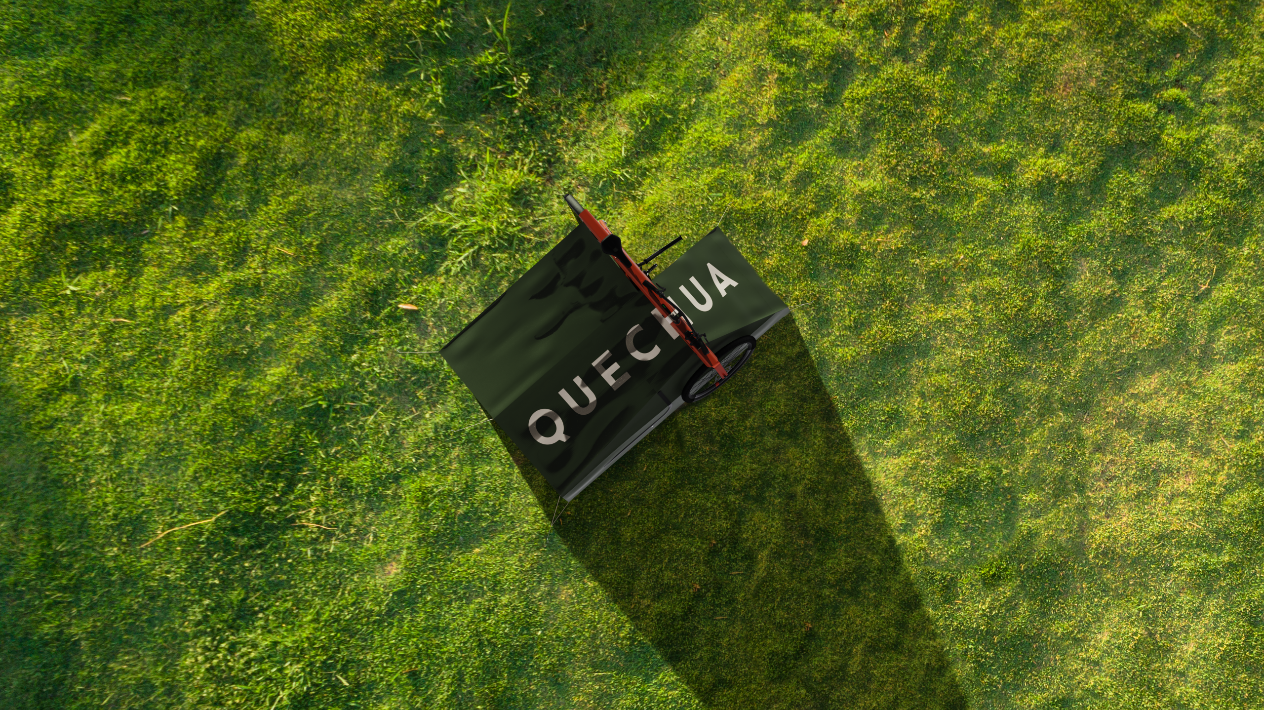 Decathlon asked us to design a new concept for their touring e-bike range. The central idea was to foster an internal collaboration between its two sub-brands, Rockrider and Quechua, to combine cycling and camping into one accessible object. TentBike makes bike camping accessible to people with all types of experience in the sport. The tent is stored inside the frame while riding, and when parked, the bicycle frame becomes the supporting structure of the tent. Designed as a rental system, the product could be picked up at a Decathlon store, fully equipped with all necessary camping gear packed in bike bags.